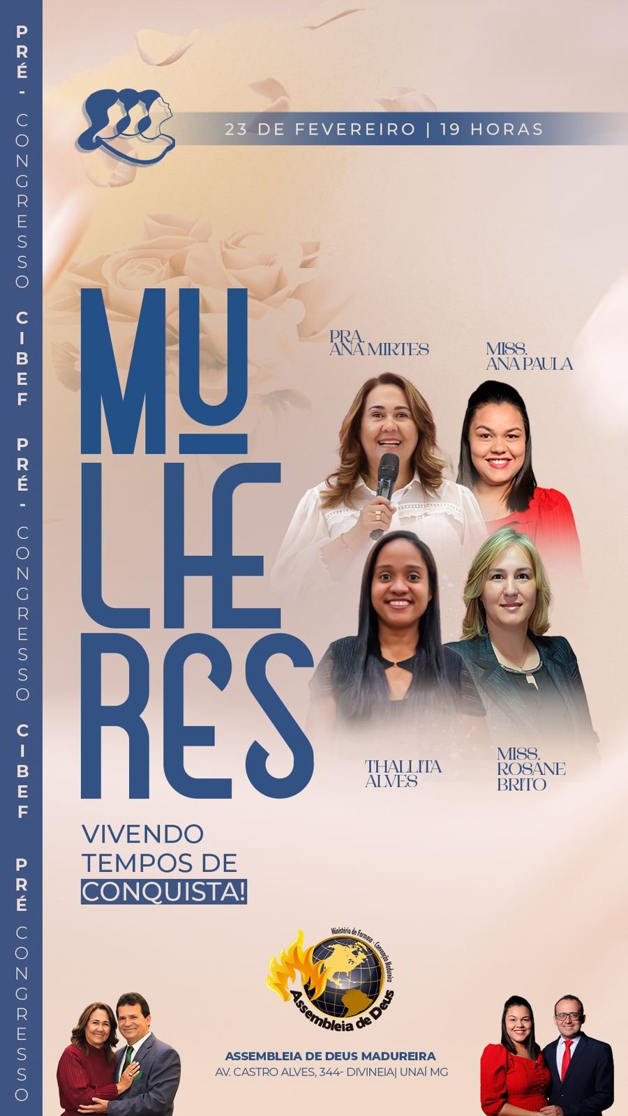 A Cidade de Unaí-MG, receberá no próximo dia 23 de fevereiro, o PRÉ CONGRESSO CIBEF – CONGRESSO DE MULHERES – ASSEMBLEIA DE DEUS – MINISTÉRIO DE FORMOSA.